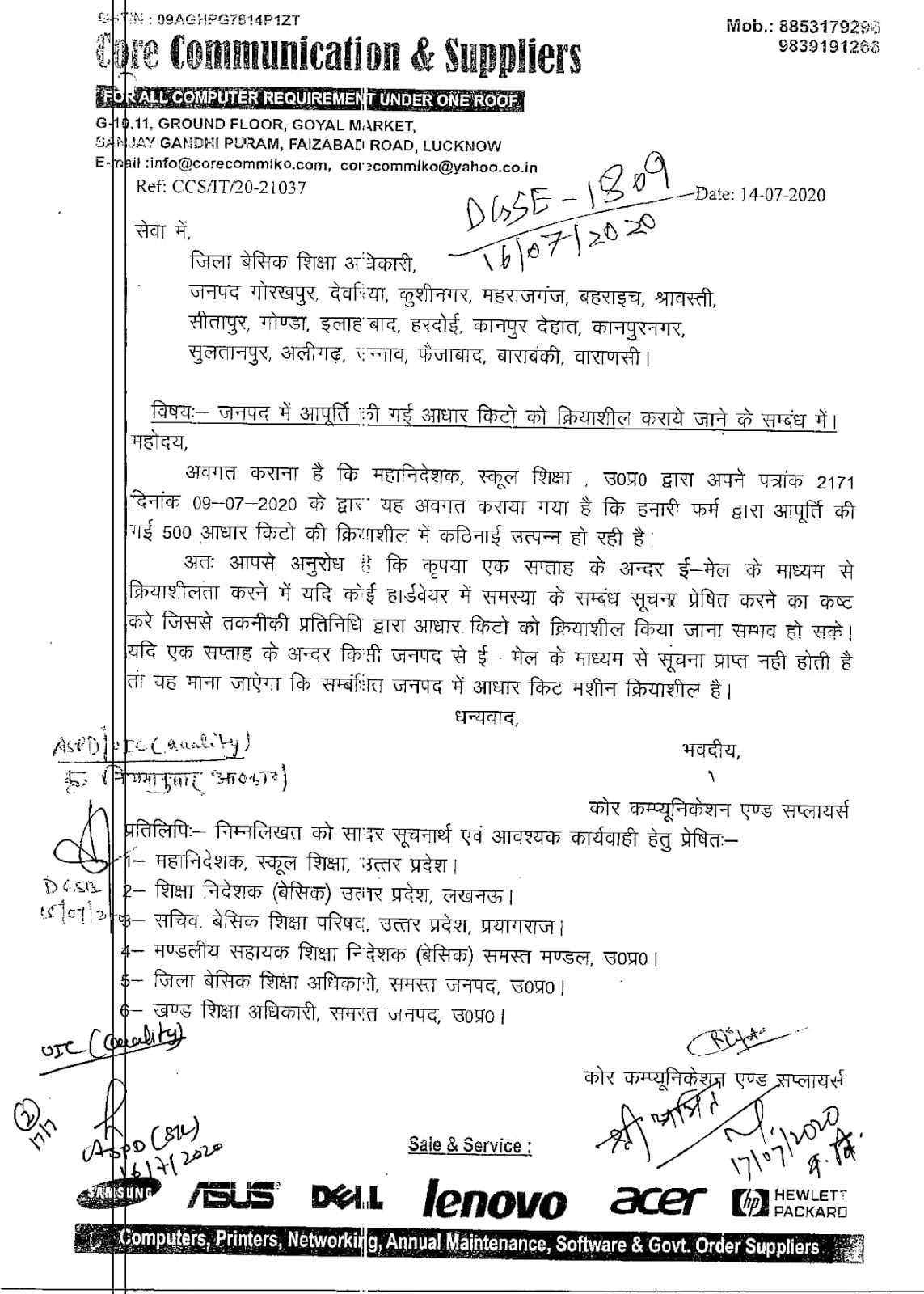 Aadhaar किटों क्रियाशील कराये जाने के संबंध में
