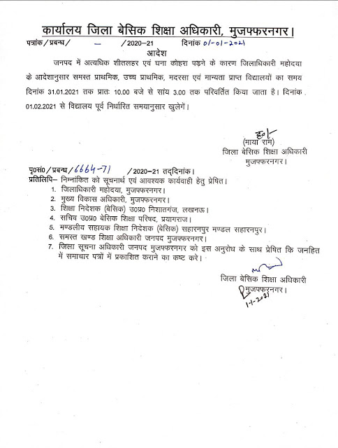 शीतलहर एवं कोहरे के कारण सभी विद्यालयों का समय हुआ परिवर्तित, देखें यह आदेशः Muzaffarnagar