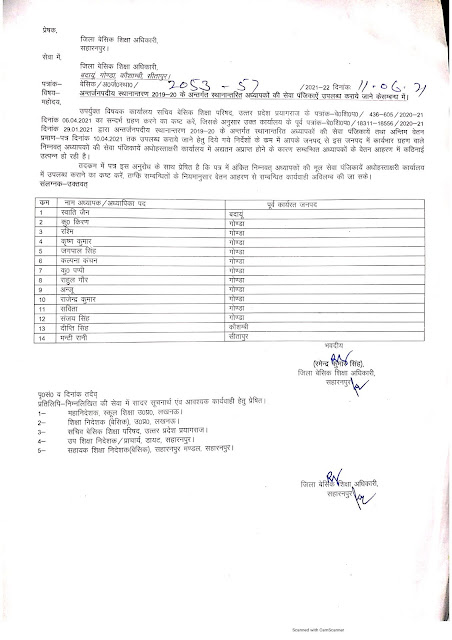 सहारनपुर जिले में अंतर्जनपदीय स्थानान्तरण में स्थांतरित अध्यापकों की सेवा पंजिका उपलब्ध कराने के संबंध में।
