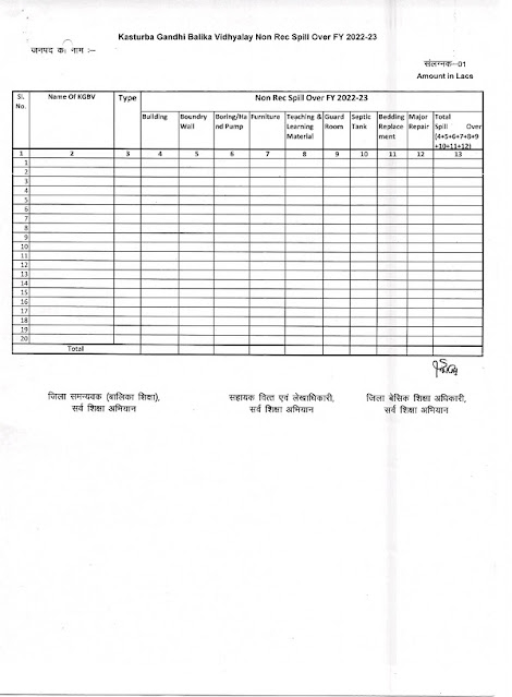 Kasturba Gandhi Balika Vidyalaya में स्पिल ओवर की सूचना उपलब्ध कराने के सम्बन्ध में